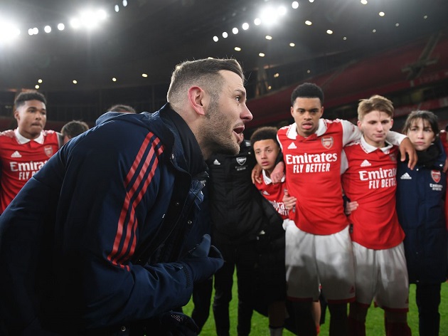 Nhưng điều đó không ngăn tiền vệ này ăn mừng cuồng nhiệt sau chiến thắng oanh liệt của các đàn em trước đội trẻ Pháo thủ.